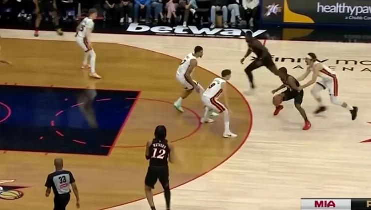 马克西超高位置持球与博纳发动挡拆配合,行进间吸引拉尔松非常激进的协防后立即找到空位的沃特福德,